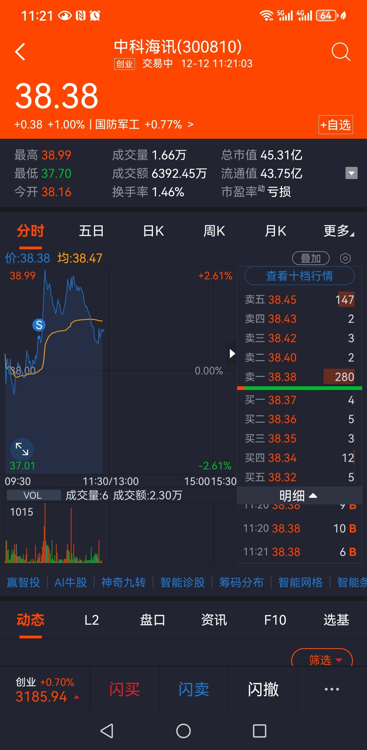 $中科海讯(SZ300810)$ 反t不好做,跌不下去,就当降仓位了,这几天的t小赚