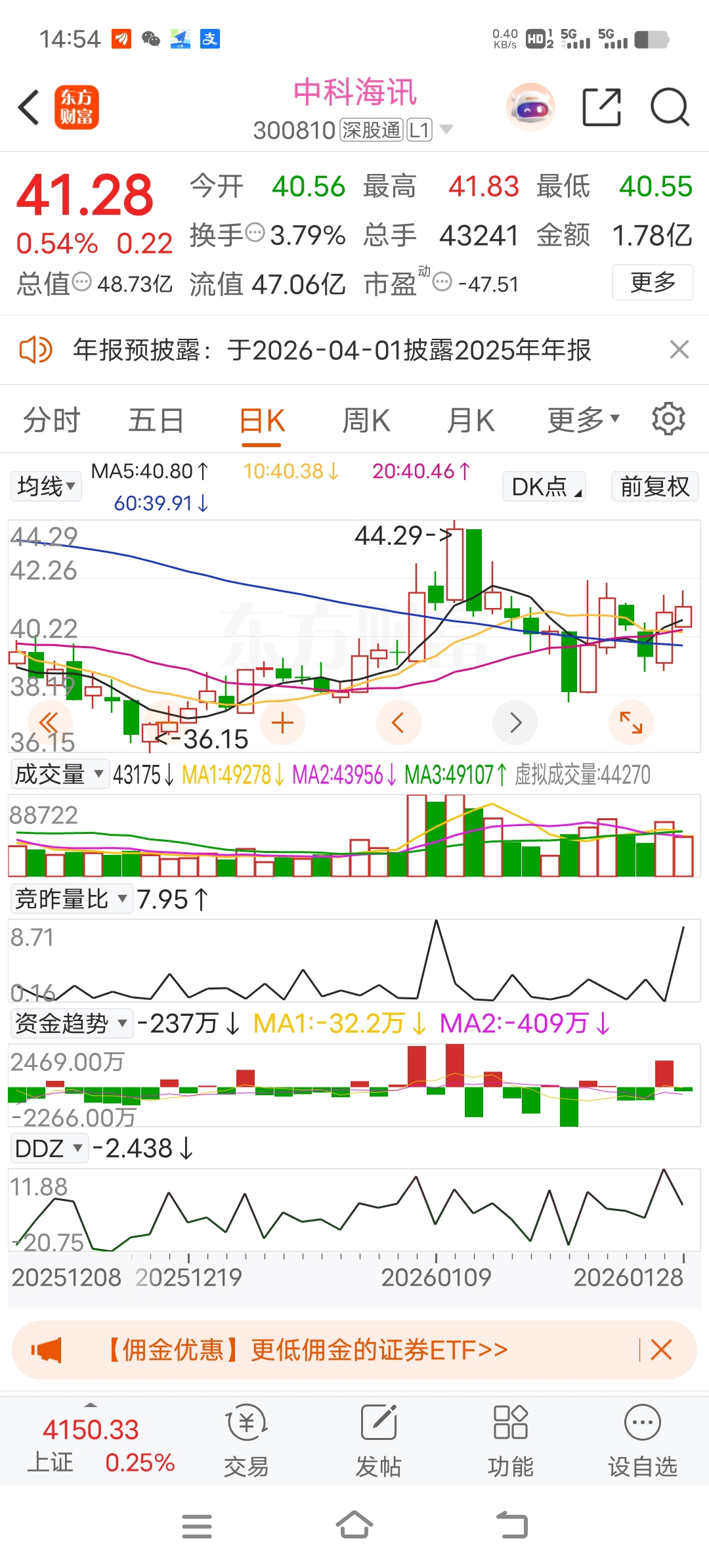 $中科海讯(SZ300810)$ 昨天日线小时线共振买入,今天没有卖好。