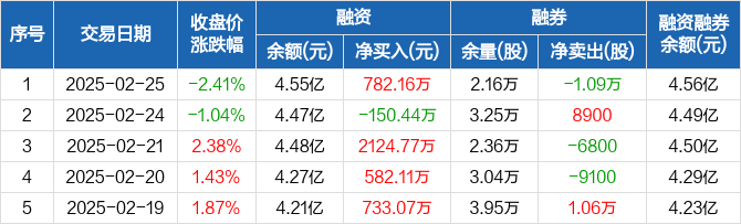 铂科新材:融资净买入782.16万元,融资余额4.55亿元(02-25)