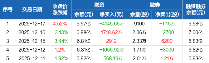 铂科新材:融资净偿还4145.65万元,融资余额6.57亿元(12-17)