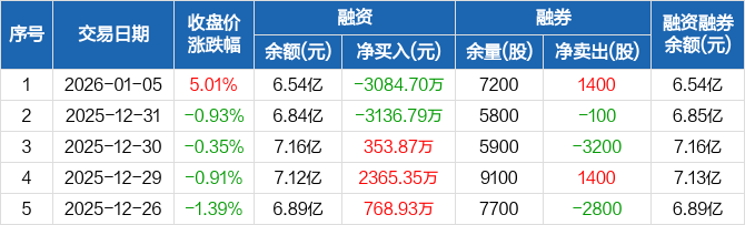 铂科新材:融资净偿还3084.7万元,融资余额6.54亿元(01-05)