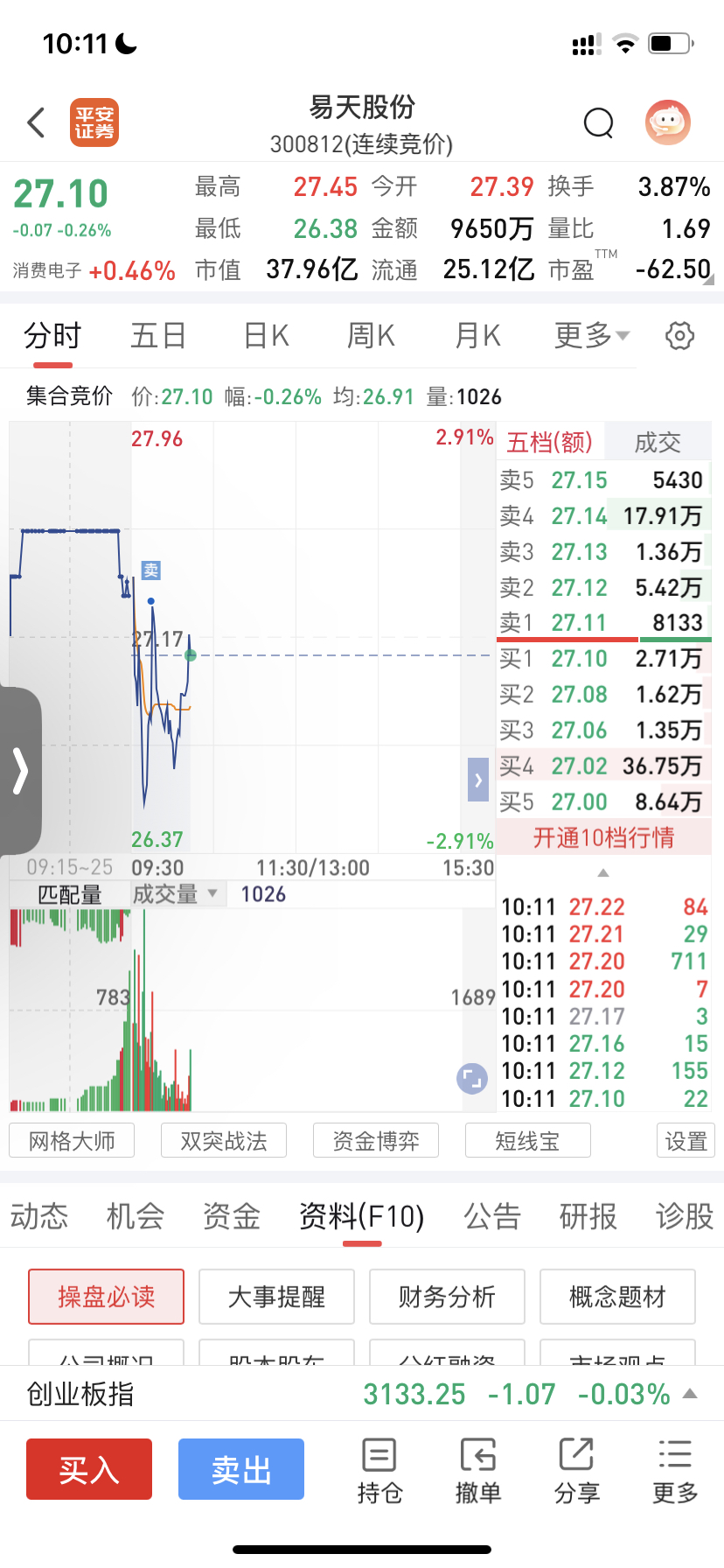 $易天股份(SZ300812)$ 别拉,打算26.15附近接回