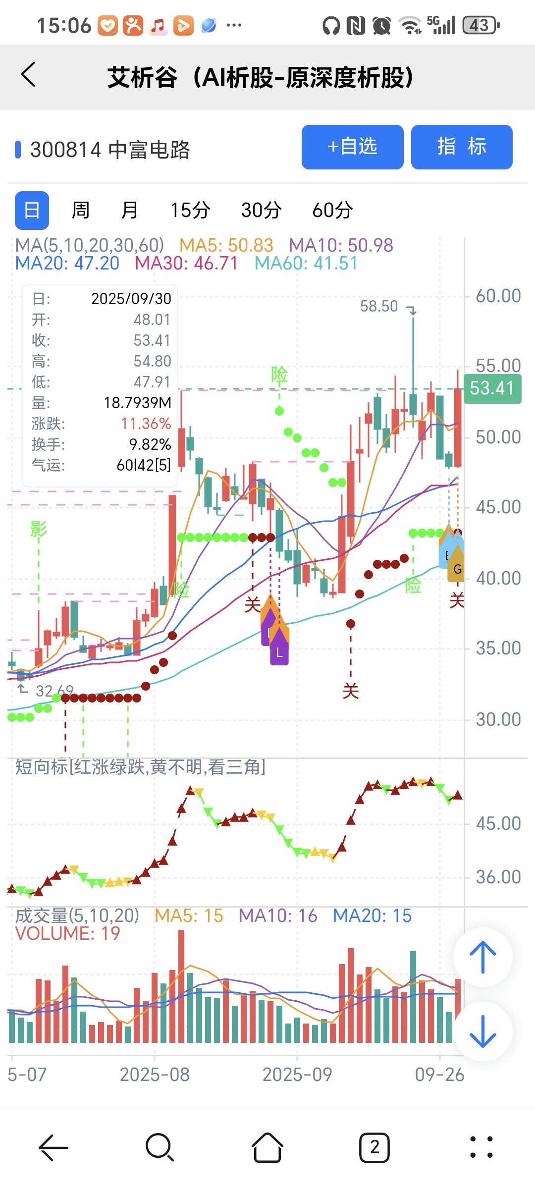 图中A、B、G、L 关注标记是对应AI选股模型当天下午2点多给出。