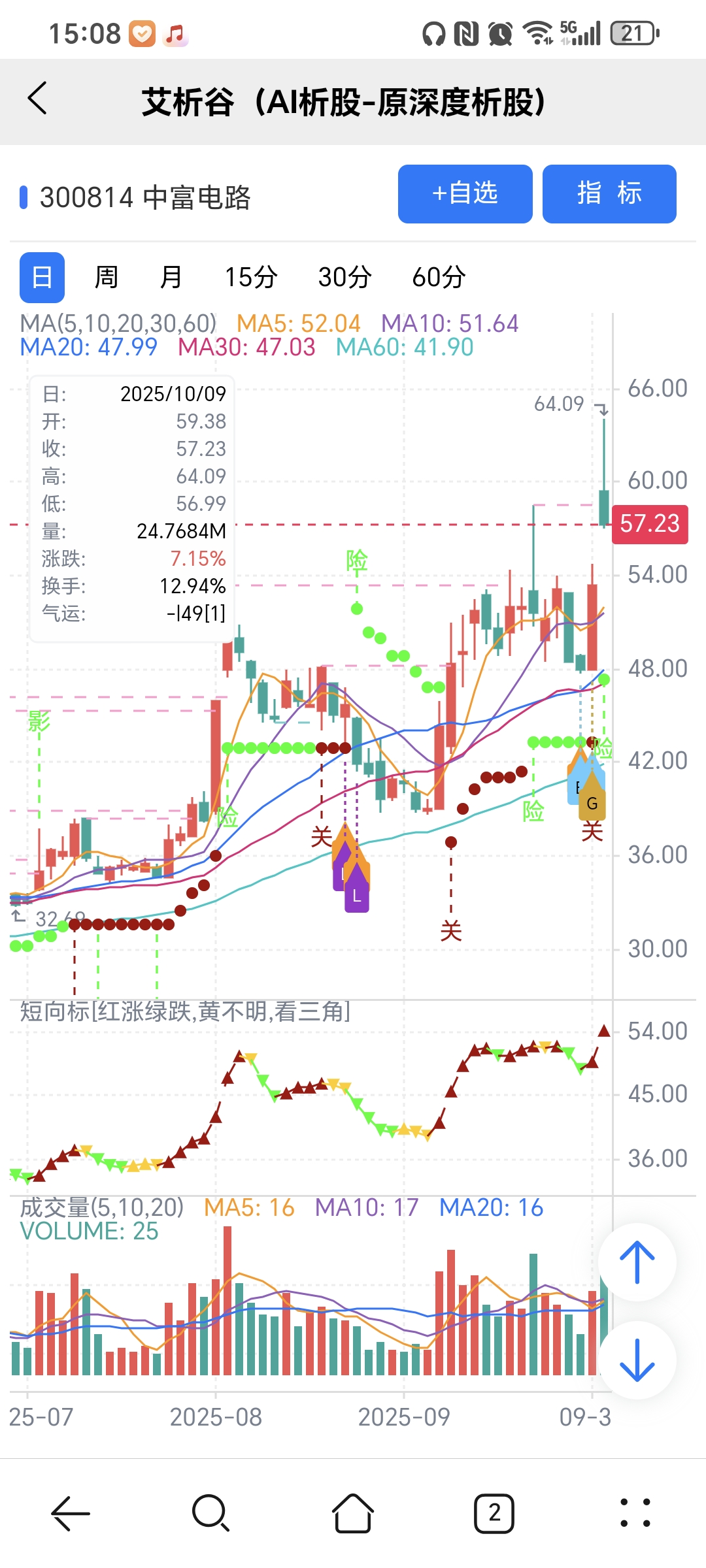 图中A、B、G、L 关注标记是对应AI选股模型当天下午2点多给出。