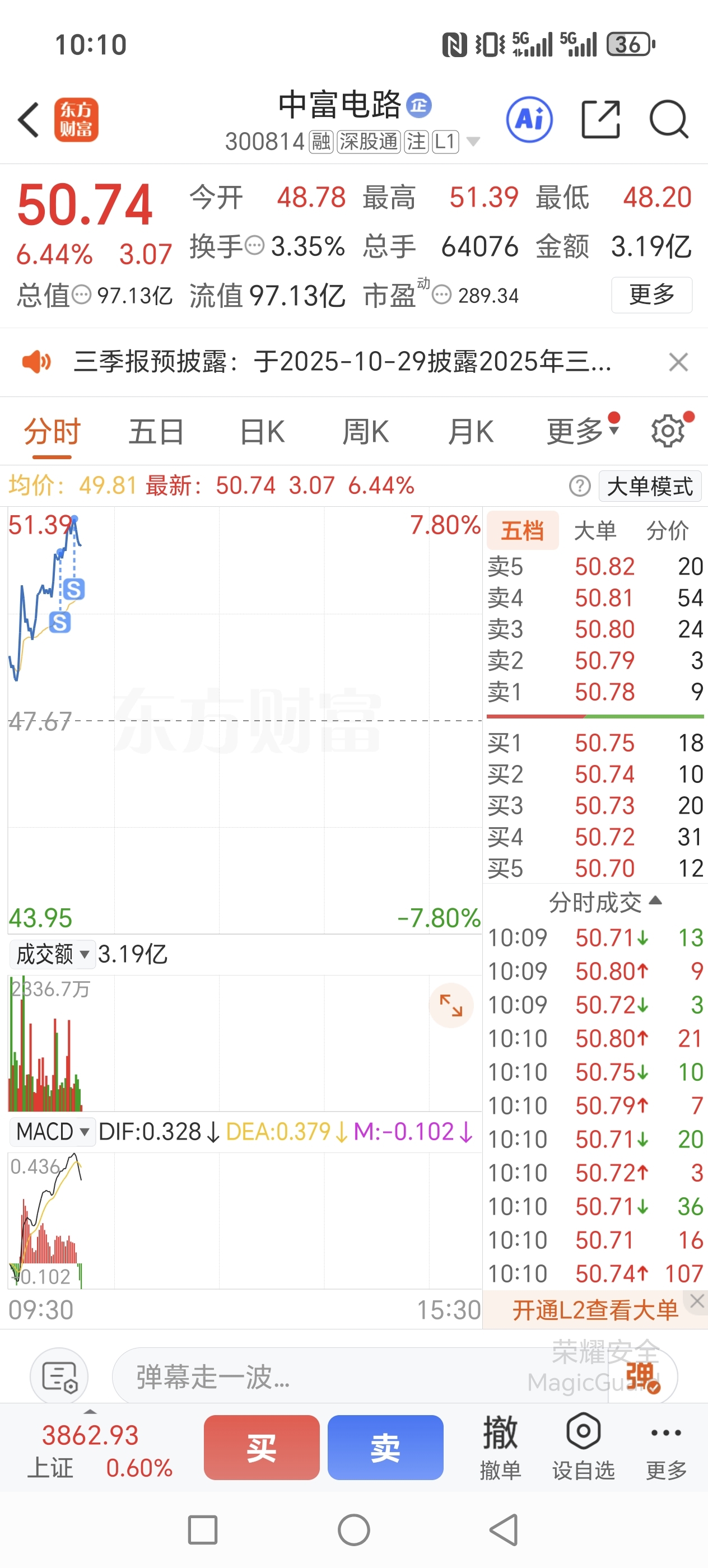 $中富电路(SZ300814)$ 上周低开9个点进的,知足了