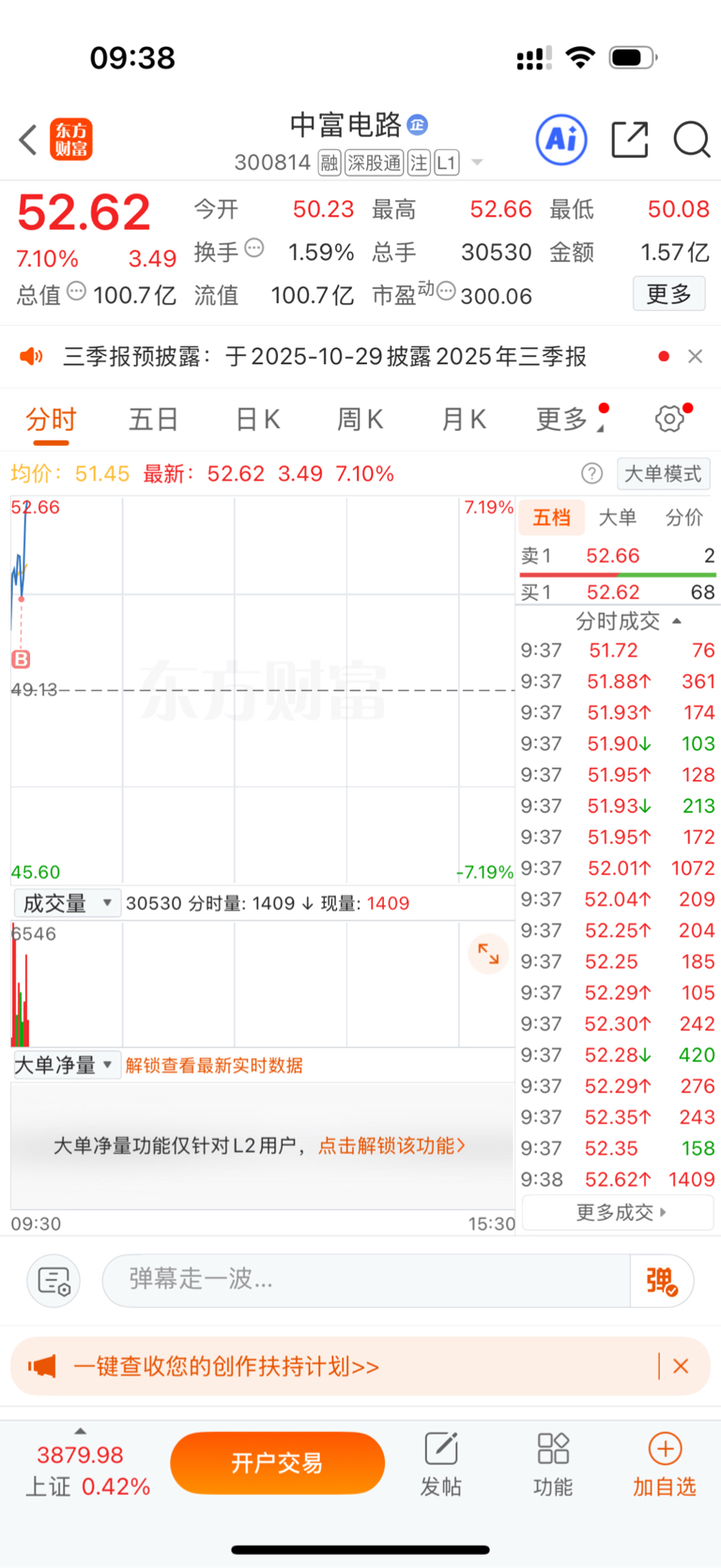50.73选择介入$中富电路(SZ300814)$ #强势机会# #实盘记录# #投资干货# #投资随笔#
