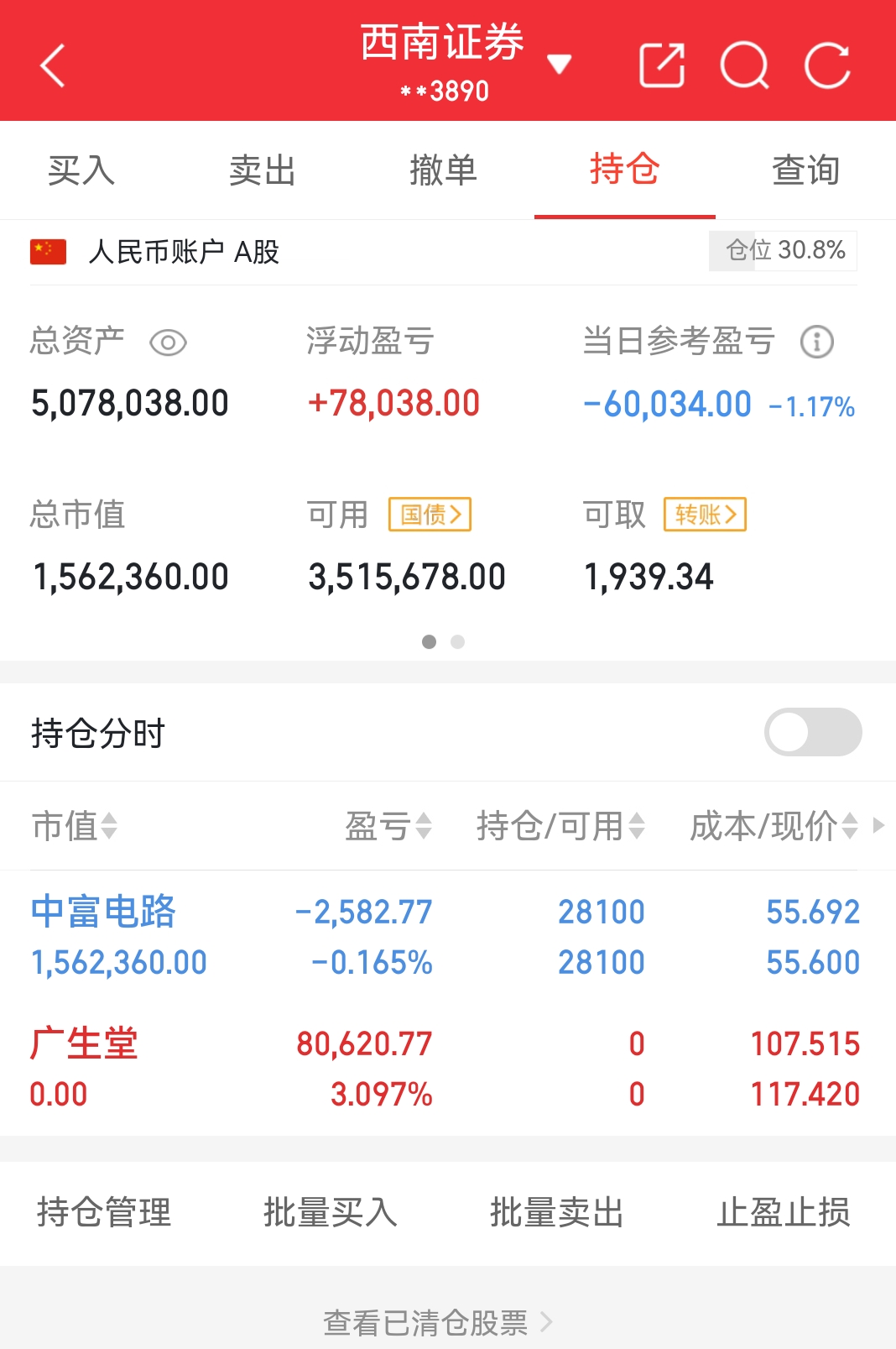 中富电路,早盘开盘出了一大半,下午看情况加仓还是出。大跌不怂,大涨不飘兄弟们加油。$中富电路(SZ300814)$ $广生堂(SZ300436)$