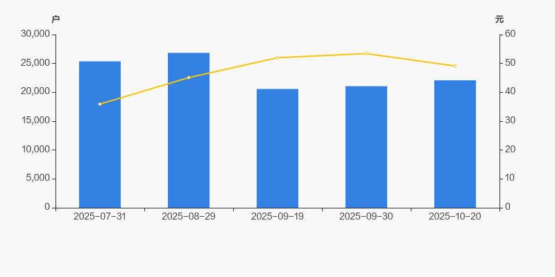2025年7月31日至今,公司股东户数显著下降,区间跌幅为12.95%。2025年7月31日至2025年10月20日区间股价上涨36.78%。