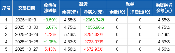 中富电路:融资净偿还2063.34万元,融资余额4.55亿元(10-31)