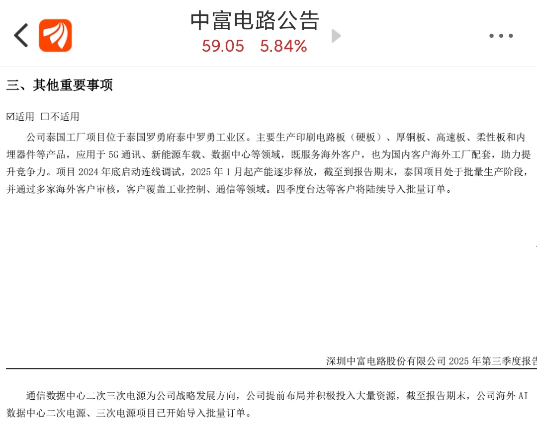 $中富电路(SZ300814)$ 中富电路泰国工厂的AI服务器电源通过台达供货英伟达