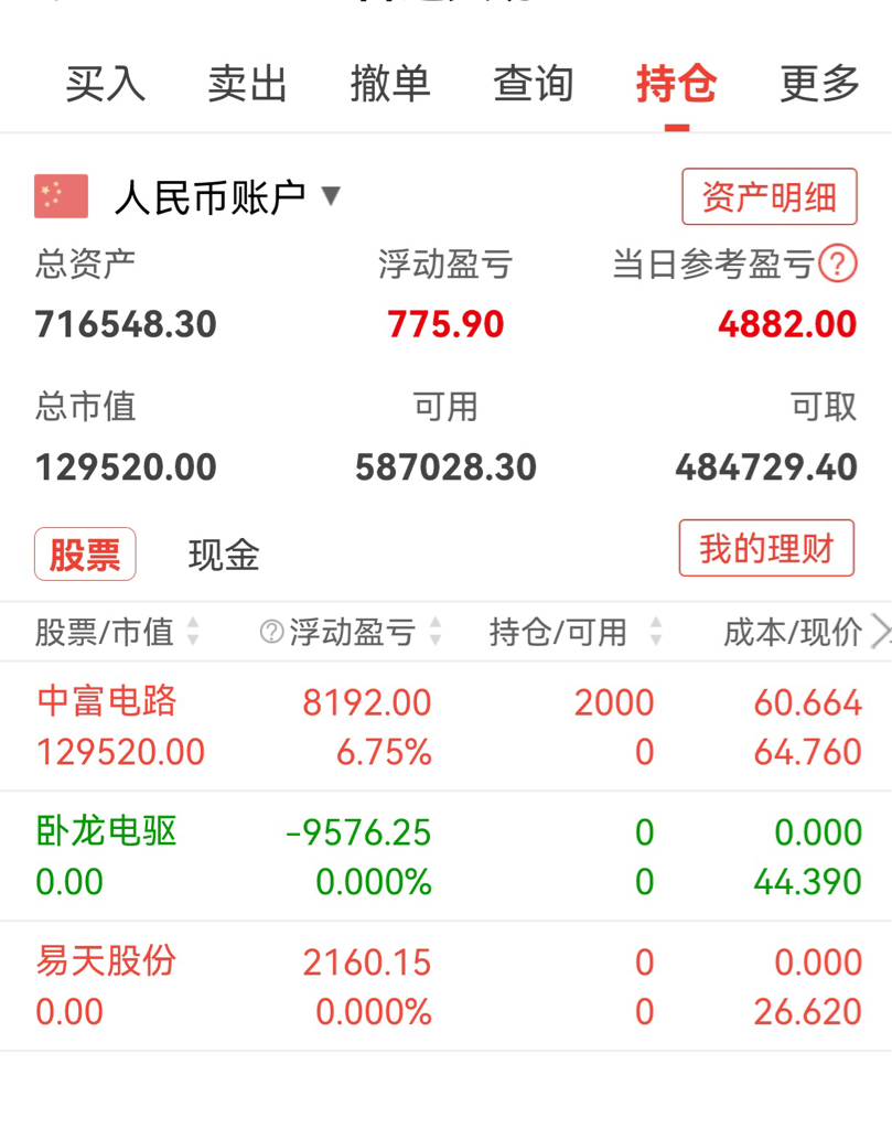30W挑战日志11.4号中富电路卧龙电驱易天股份心态第一投资需谨慎