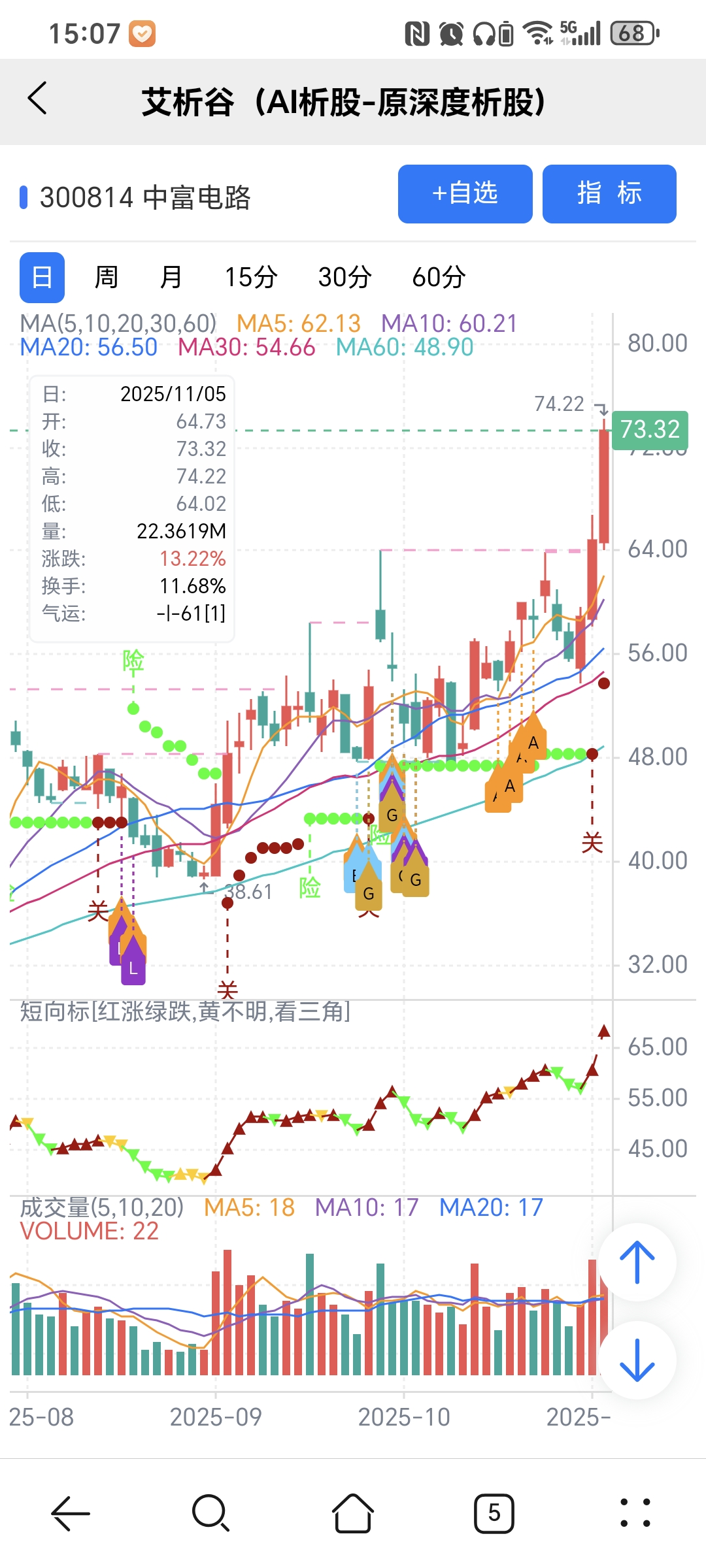 图中A、B、G、L 关注标记是对应AI选股模型当天下午2点多给出。
