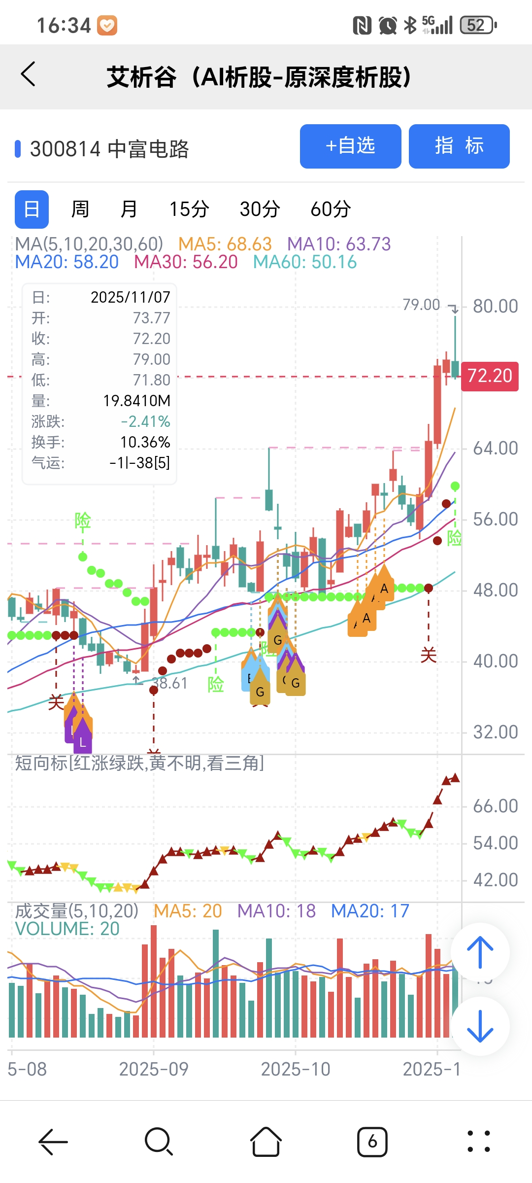 图中A、B、G、L 关注标记是对应AI选股模型当天下午2点多给出。