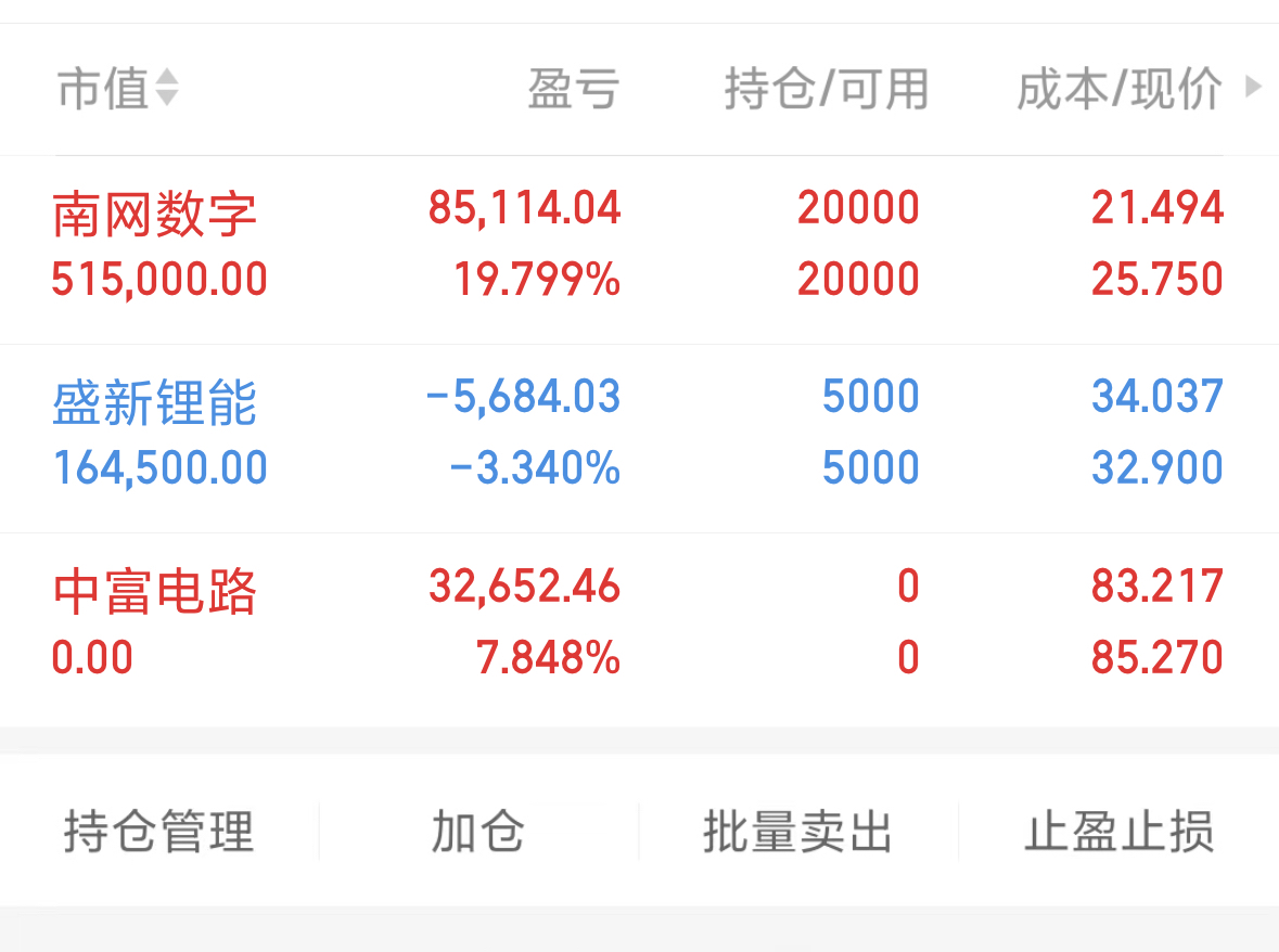11.27《林先生的增长日志》卖出:中富电路买入:继续持有:南网数字、盛新锂能不