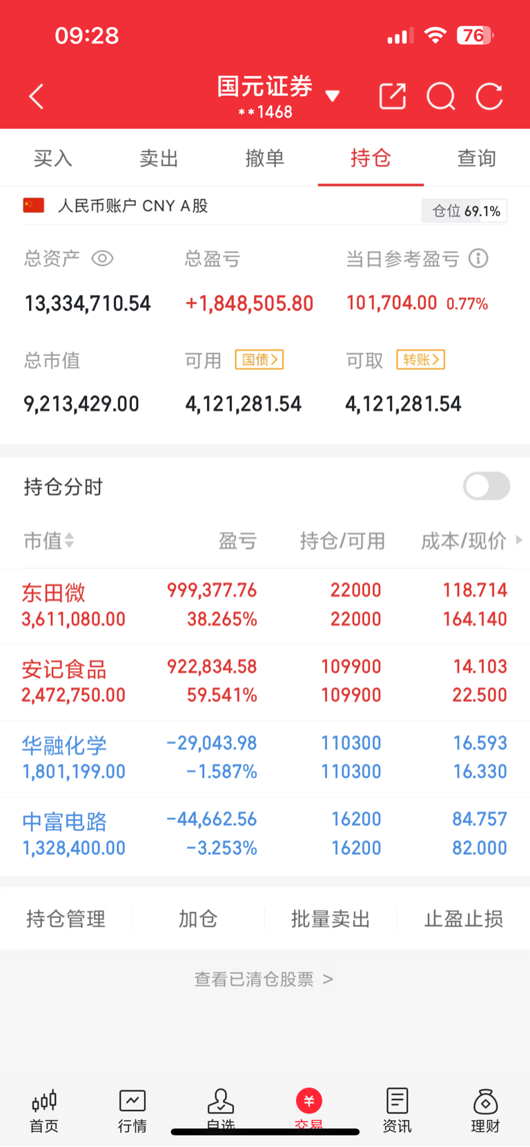 都看好了,高开的可准备备止盈出局了,中富股东减持导致低开,冲高也得及时出来了$中富电路(SZ300814)$ $东田微(SZ301183)$