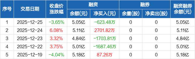 中富电路:融资净偿还623.48万元,融资余额5.05亿元(12-25)
