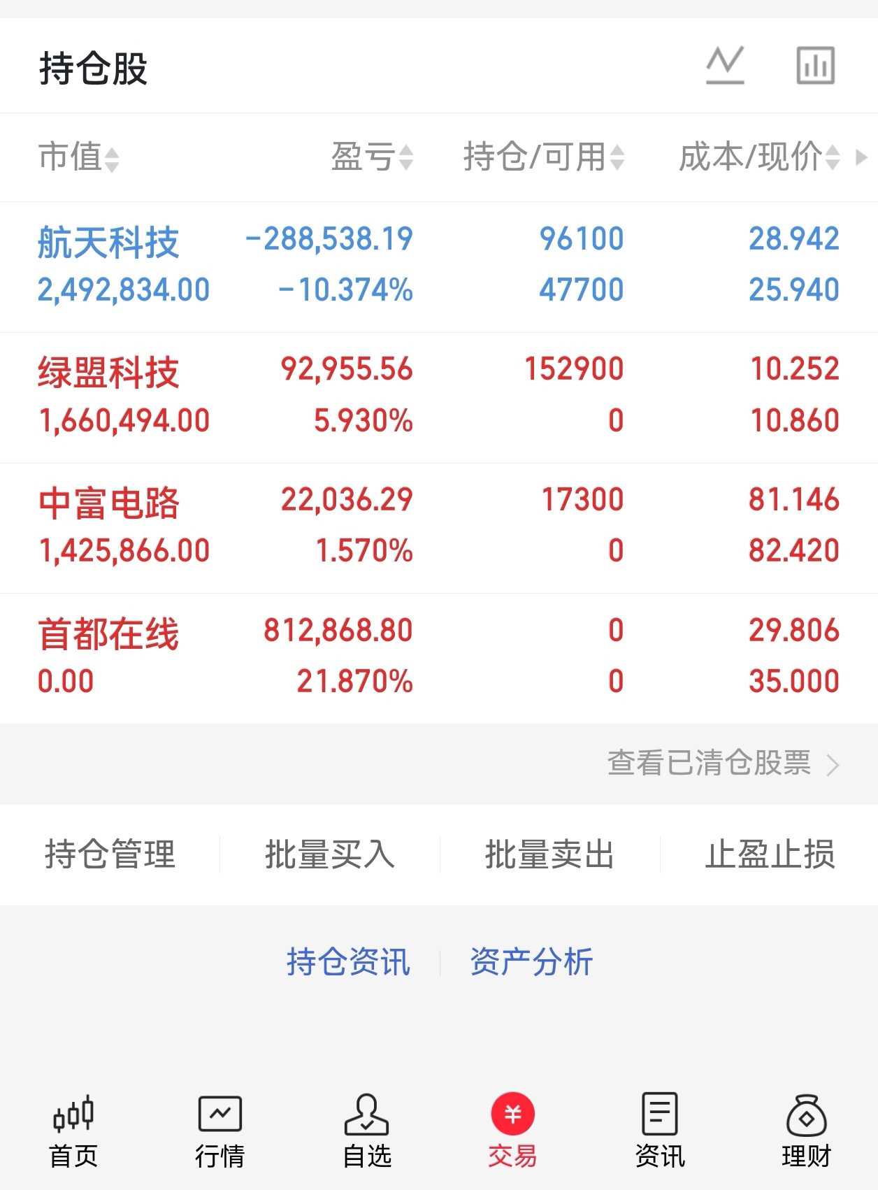 大家下午好!今天最后一个交易日!城哥在这里提前祝大家新年快乐!万事如意,心想事成,持仓过节!$中富电路(SZ300814)$ 今天水下吸了,表现还不错,过完年,看剑指高!$绿盟科技(SZ300369)$ 今天要不是被板块大盘带坏,不然肯定稳稳的$航天科技(SZ000901)$ 不说了