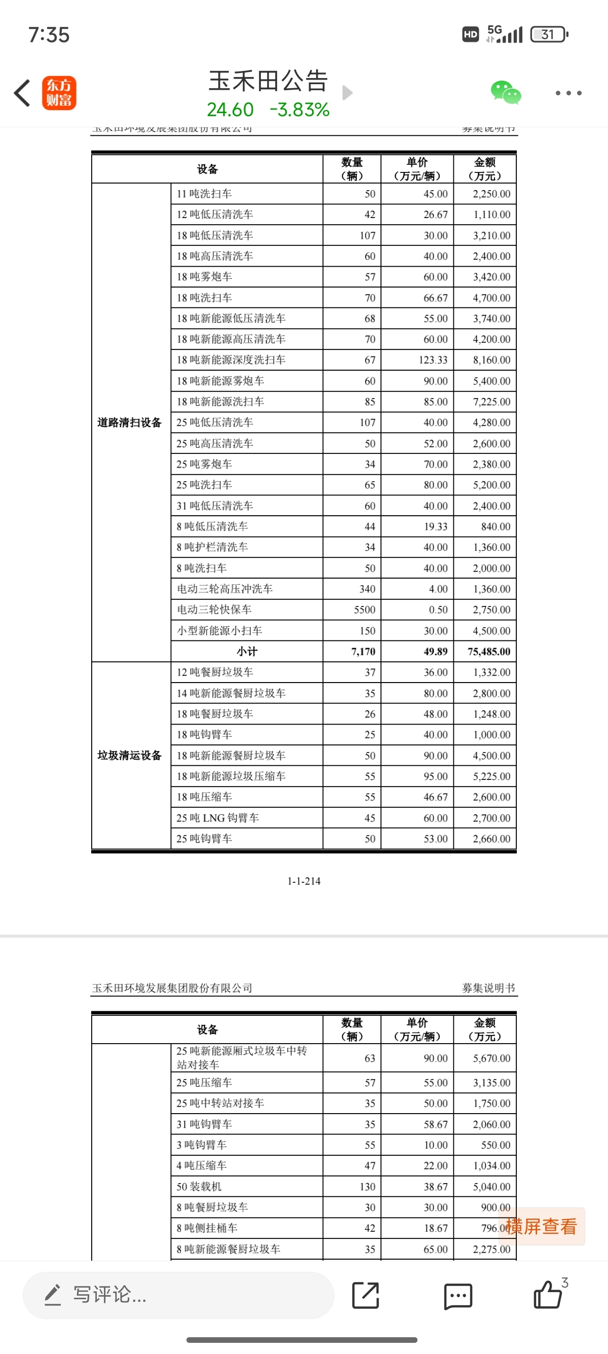 $玉禾田(SZ300815)$ 借债15亿买设备,看来项目确实太多做不过来了。第一反应是要在自有项目大规模推广自主研发的阳光S300了。仔细看了下,小型无人设备数量很少,大多数还是要外采。这不又利好福龙马,盈峰环境那些公司了希望采购完设备好好提升一下毛利率吧。
