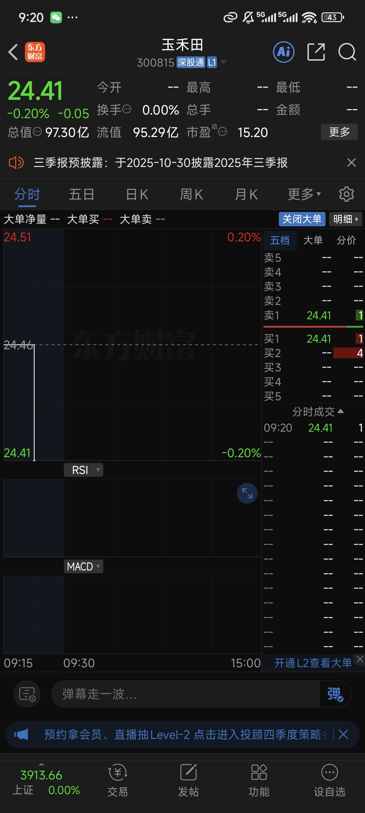 $玉禾田(SZ300815)$ 见过这种样子的集合竞价吗