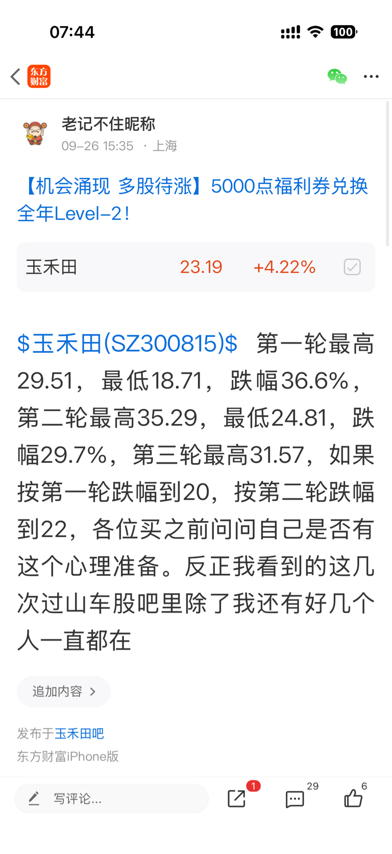 $玉禾田(SZ300815)$ 你个制杖,全部在我9月份的预期内的事情你嘚瑟个啥?全世界只有你知道要调整?我低吸高抛好多次了,你边上看着赚了半根掉毛没啊?还一天到晚好像自己把大盘唱下来一样,韭菜里的韭菜根也没这么制杖