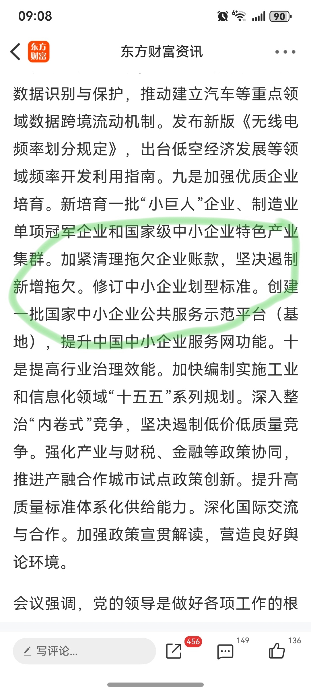 工信部明年工作重点之一:清理拖欠企业账款。希望能落实到位,玉禾田有46亿应收账款