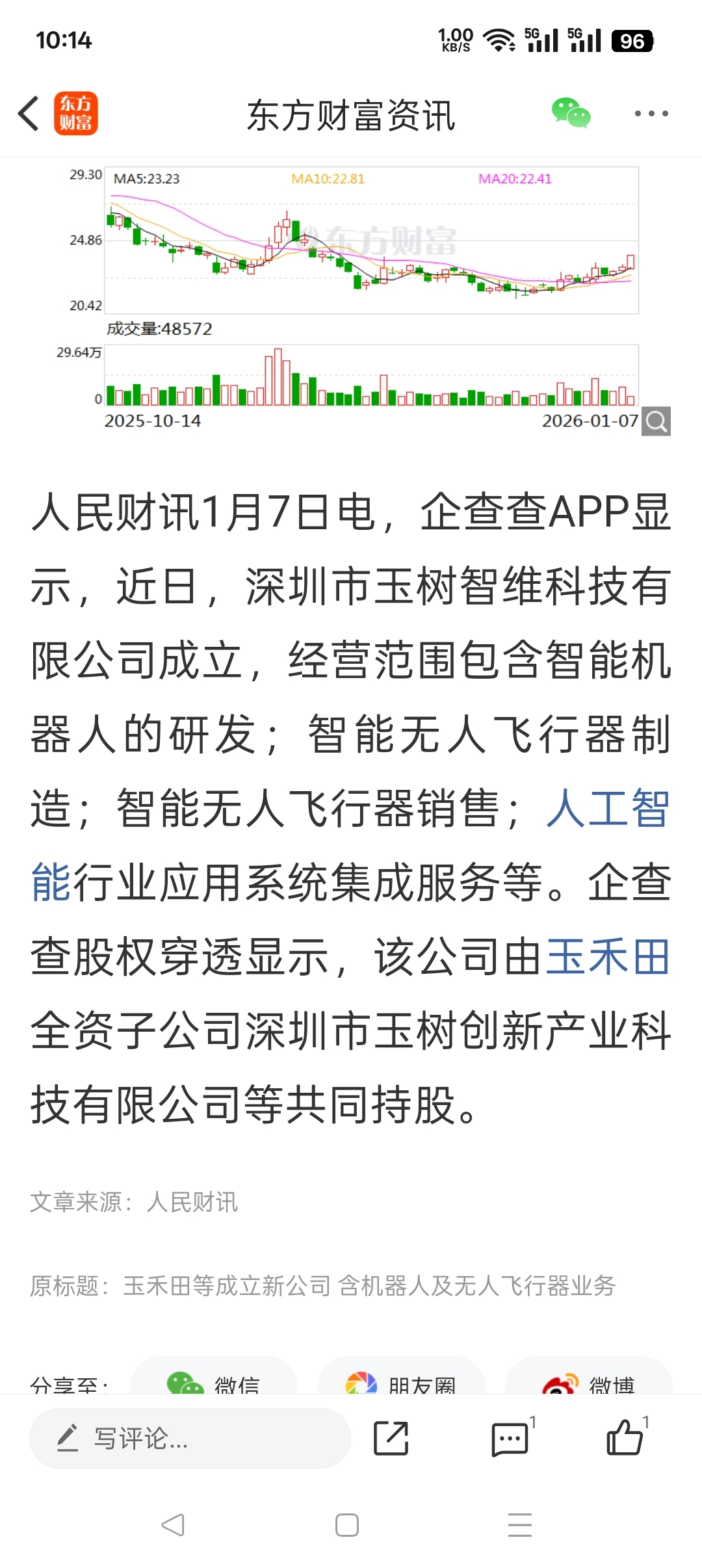 $玉禾田(SZ300815)$ 有擦边了
