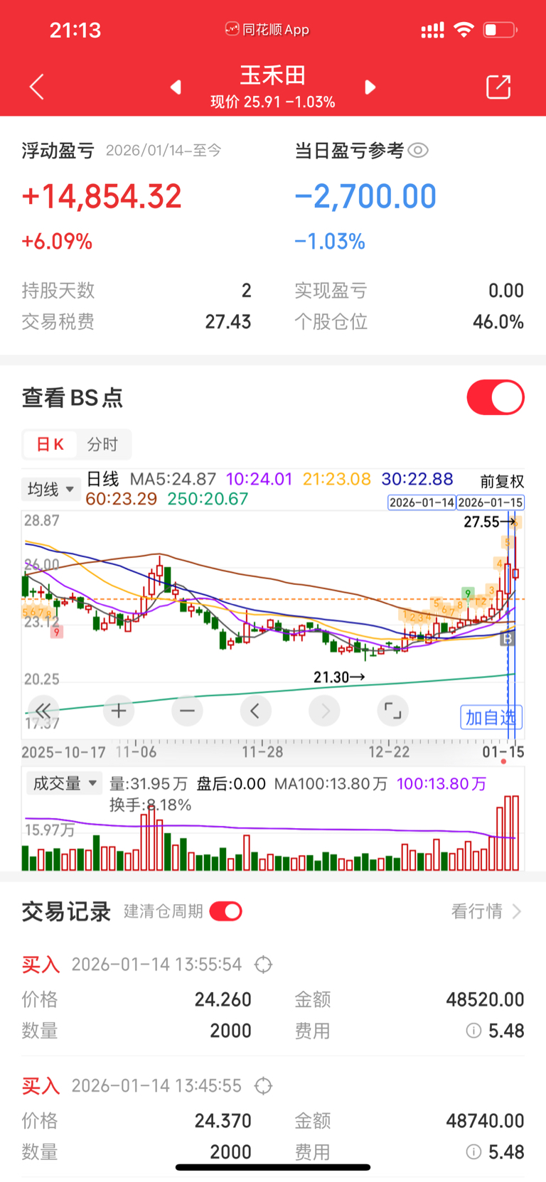 $玉禾田(SZ300815)$ 明天能让保本都跑都行,就当没买过这个票