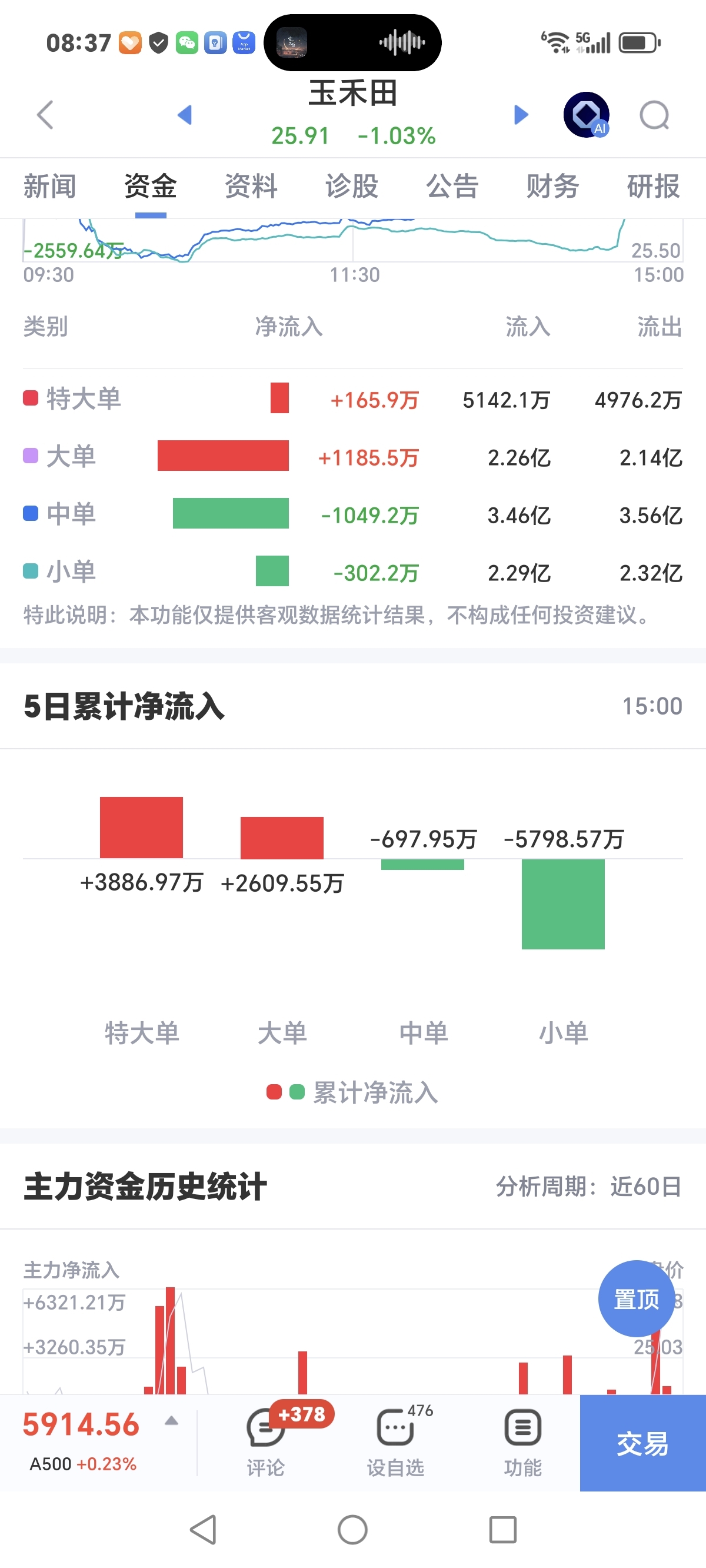 $玉禾田(SZ300815)$ 玉禾田:业绩优良,环境发展,向特定机构转让股权,不是二级市场减持,构成利好,去年8月3800多点股价35元多,现在4100多点25元多,价有所值,明天看大涨!近三天主力流入图而散卖出图示: