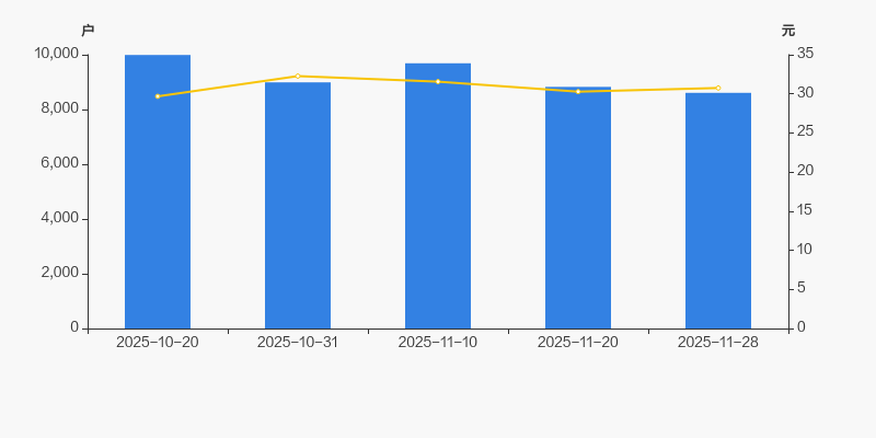 2025年10月20日至今,公司股东户数显著下降,区间跌幅为13.84%。2025年10月20日至2025年11月28日区间股价上涨3.61%。