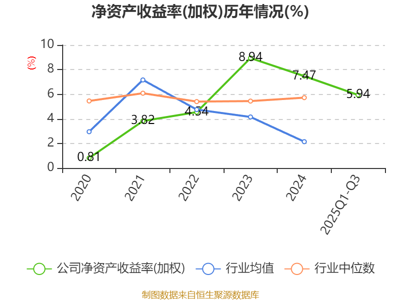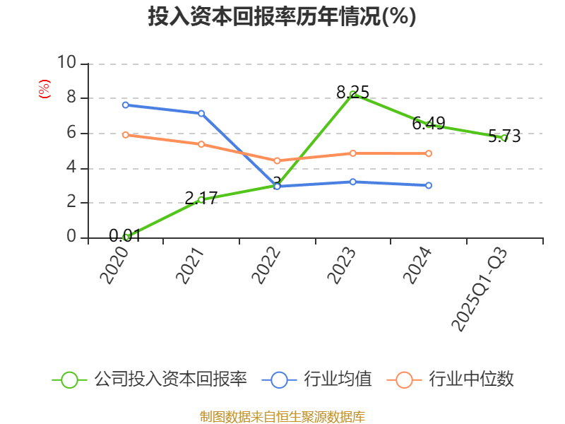 盈利能力方面, 2025年前三季度公司加权平均净资产收益率为5.94%,同比下降0.74个百分点。公司2025年前三季度投入资本回报率为5.73%,较上年同期下降0.23个百分点。