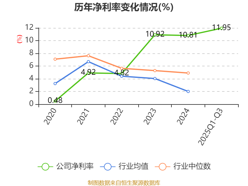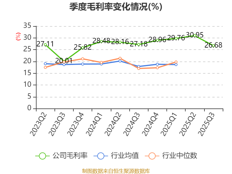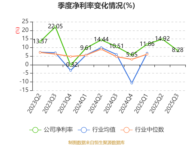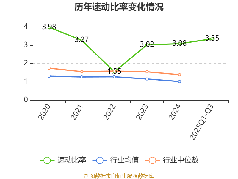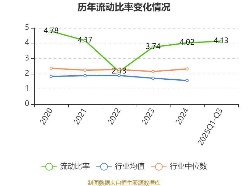 2025年前三季度,公司流动比率为4.13,速动比率为3.35。