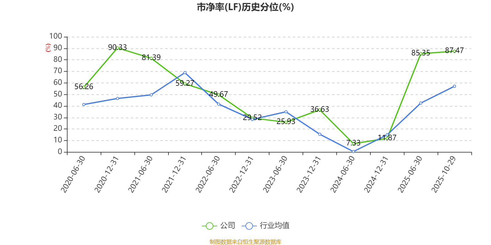 市盈率、市净率为负时,不显示当期分位数,会导致折线图中断。
