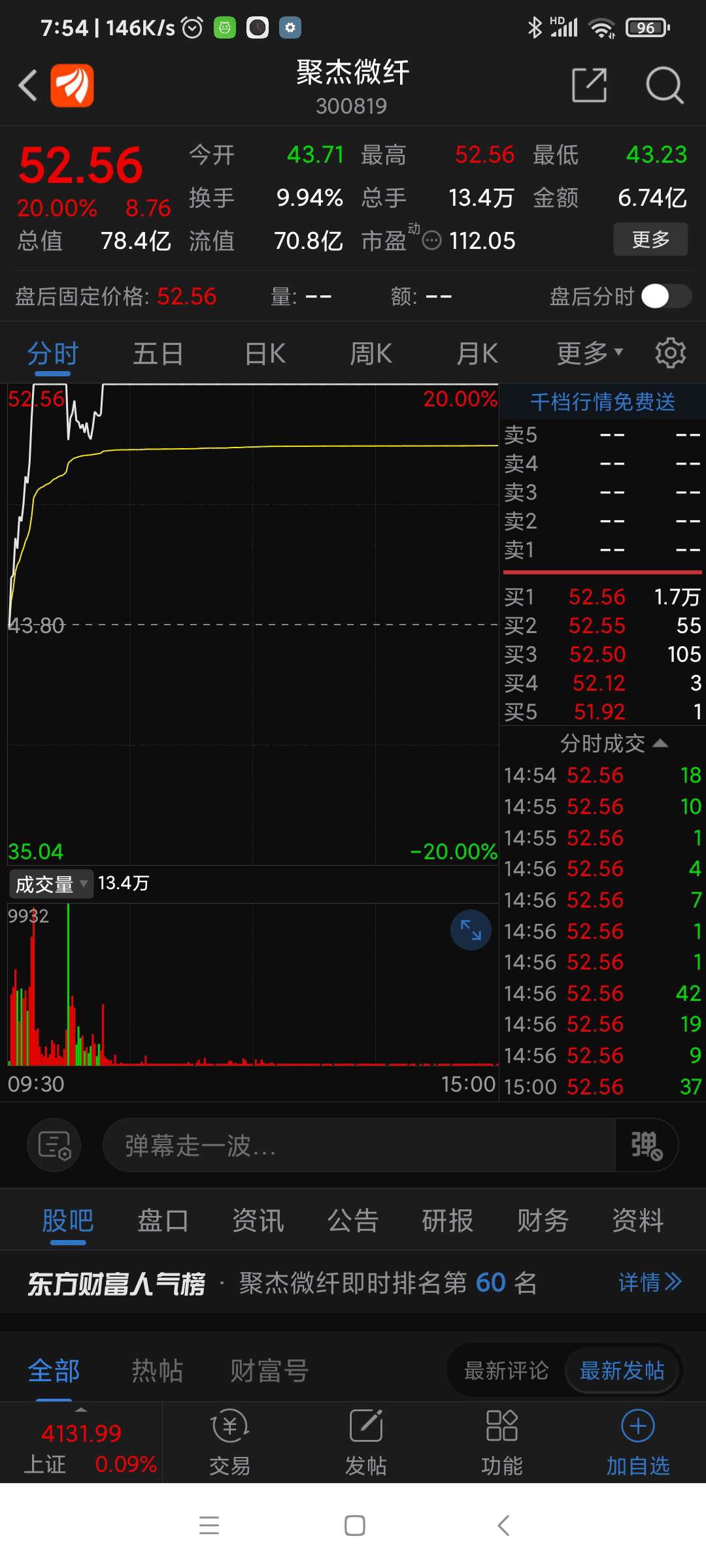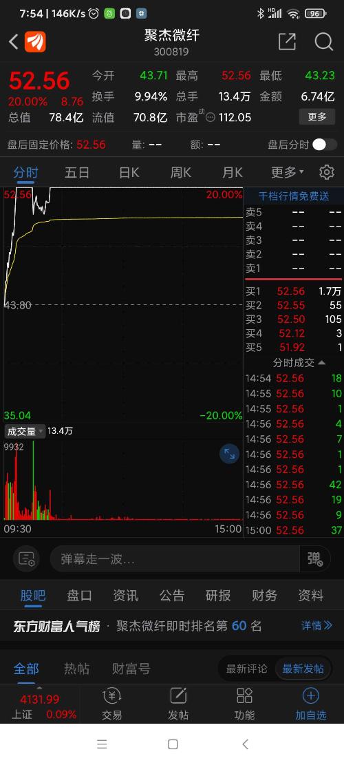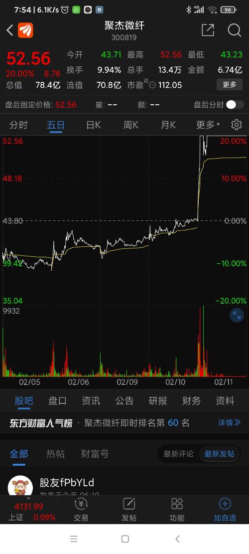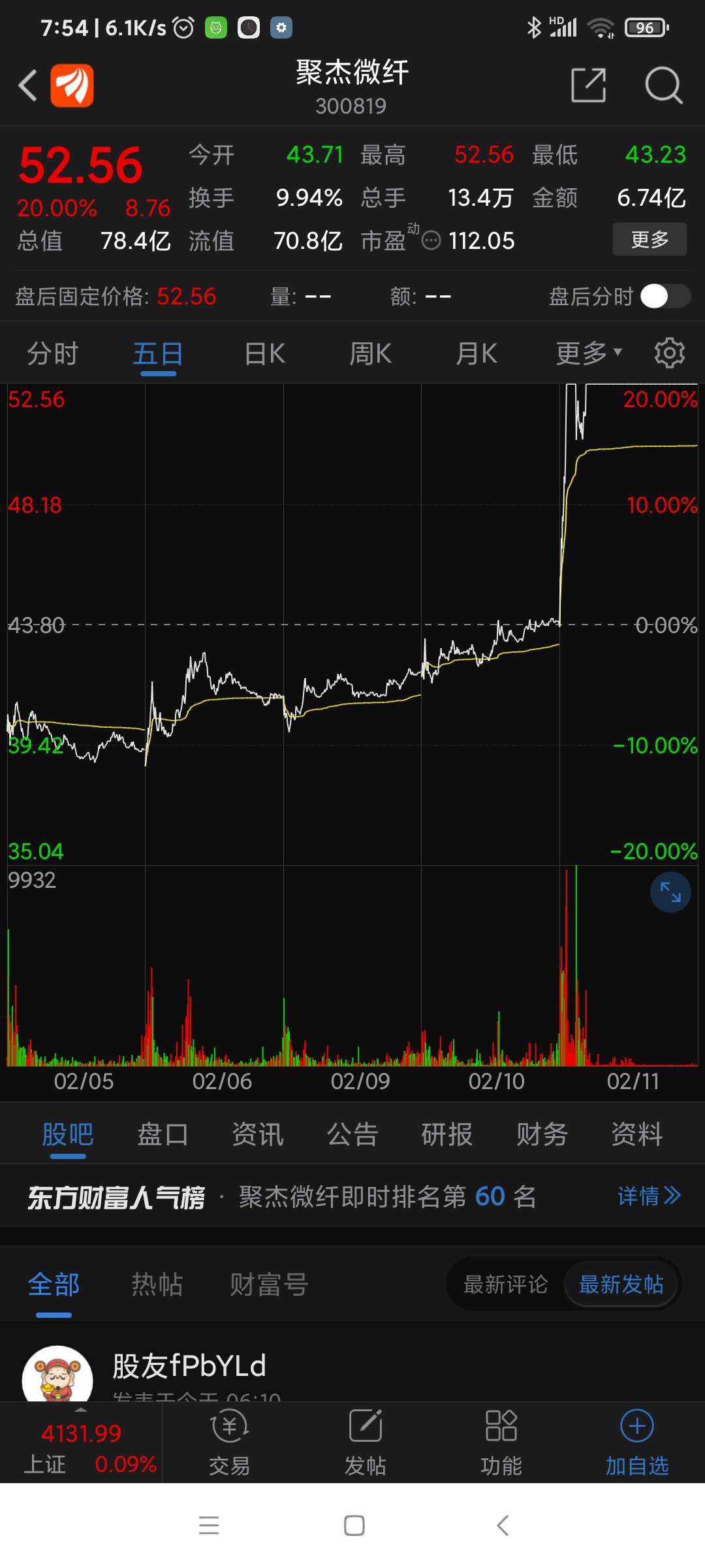 聚杰微纤,昨日涨幅列沪深股市第一名。