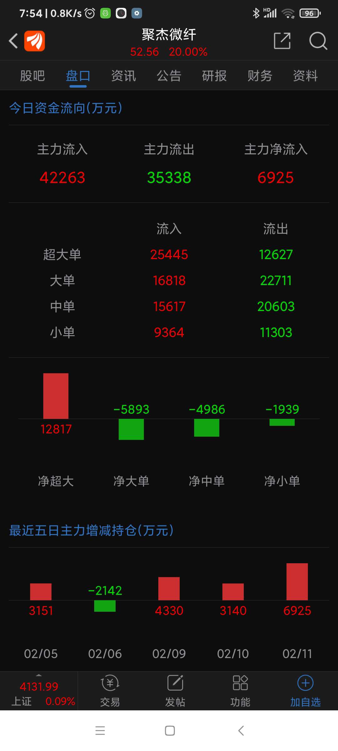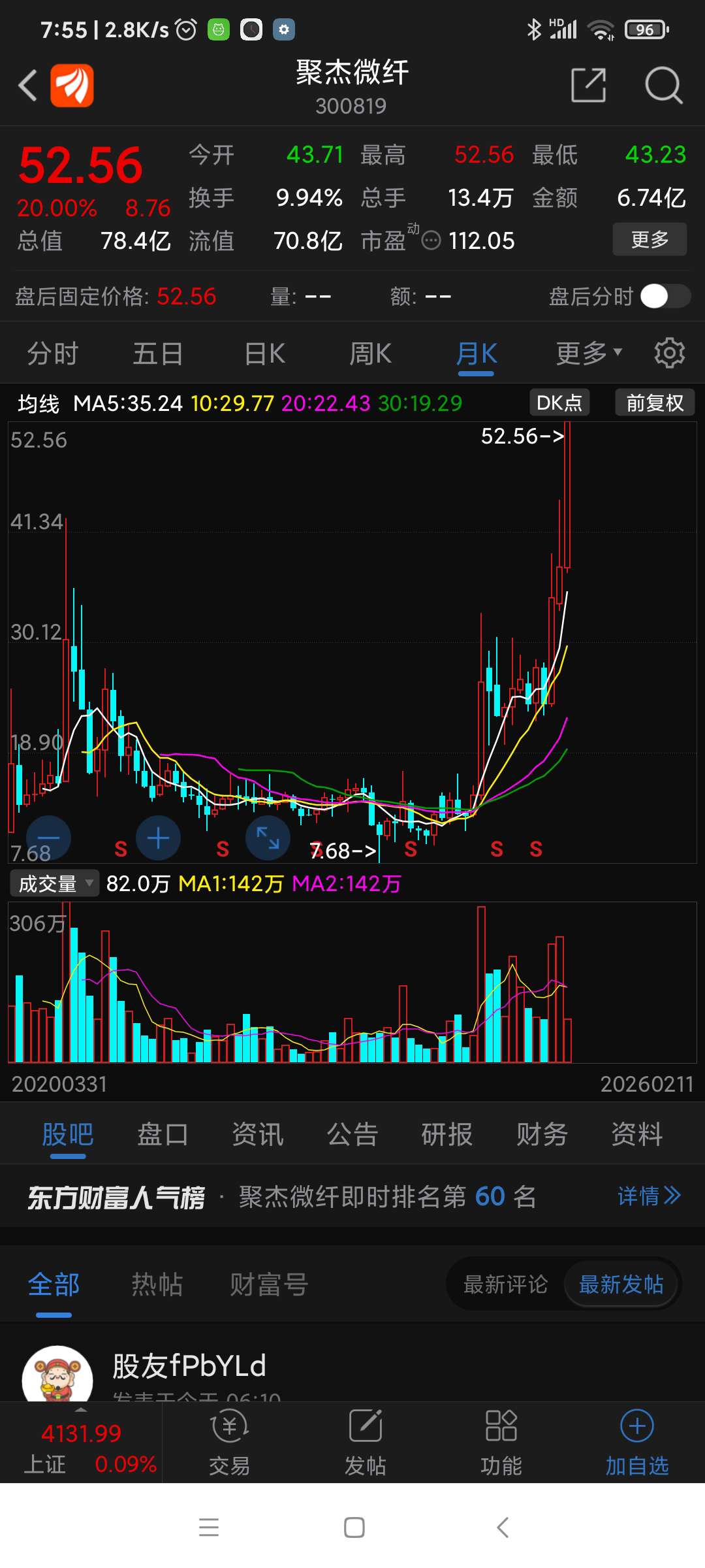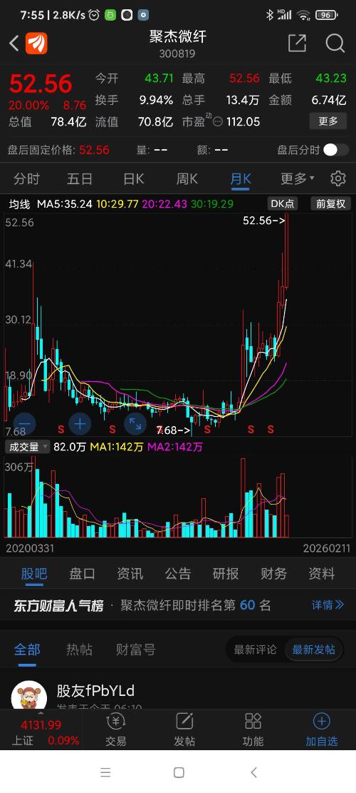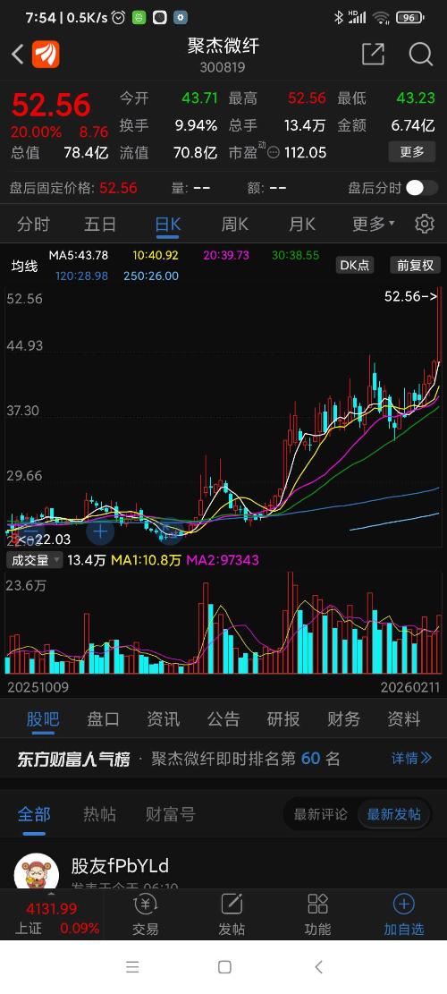 聚杰微纤,昨日涨幅列沪深股市第一名。