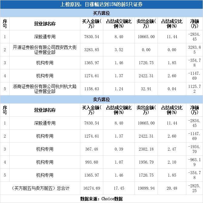 今日龙虎榜单上出现了深股通的身影,占据了买一、卖一的位置,净卖出2834.45万元,占当日成交总额的3.04%。