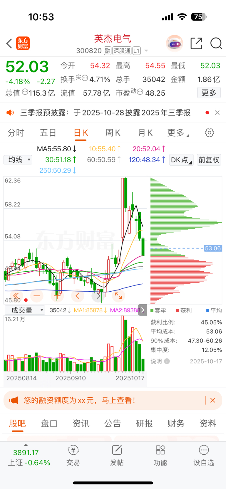 $英杰电气(SZ300820)$ 底部筹码都还没有动,肯定主力还在在里面