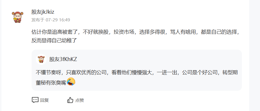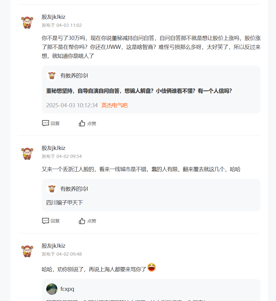 温馨提示: 1.根据《证券法》规定,禁止编造、传播虚假信息或者误导性信息,扰乱证券市场;2.用户在本社区发表的所有资料、言论等仅代表个人观点,与本网站立场无关,不对您构成任何投资建议。用户应基于自己的独立判断,自行决定证券投资并承担相应风险。《东方财富社区管理规定》
