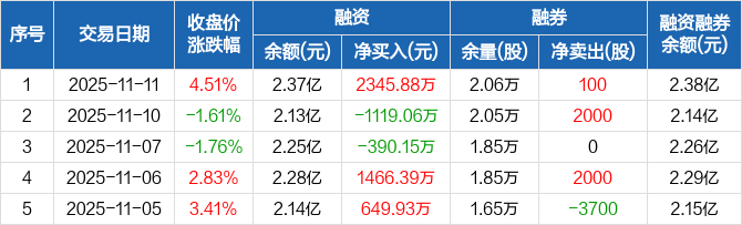 英杰电气:融资净买入2345.88万元,融资余额2.37亿元(11-11)