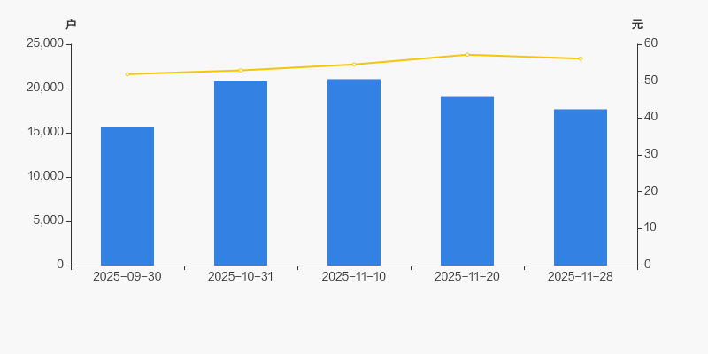 截至2025年11月28日,公司最新总股本为2.22亿股,其中流通股本为1.11亿股。户均持有流通股数量由上期的5832股上升至6291股,户均流通市值35.3万元。