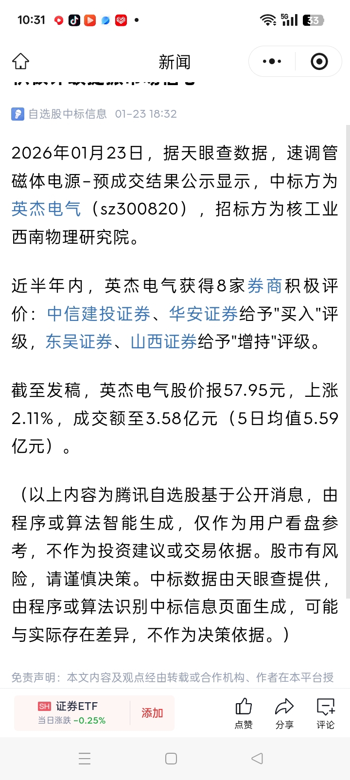 $英杰电气(SZ300820)$ 不知道中标金额是多少
