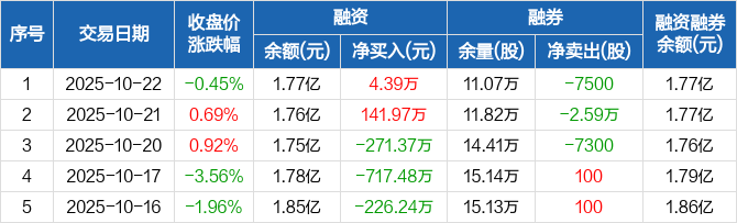 东岳硅材:融资净买入4.39万元,融资余额1.77亿元(10-22)