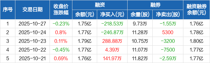 东岳硅材:融资净偿还218.53万元,融资余额1.75亿元(10-27)