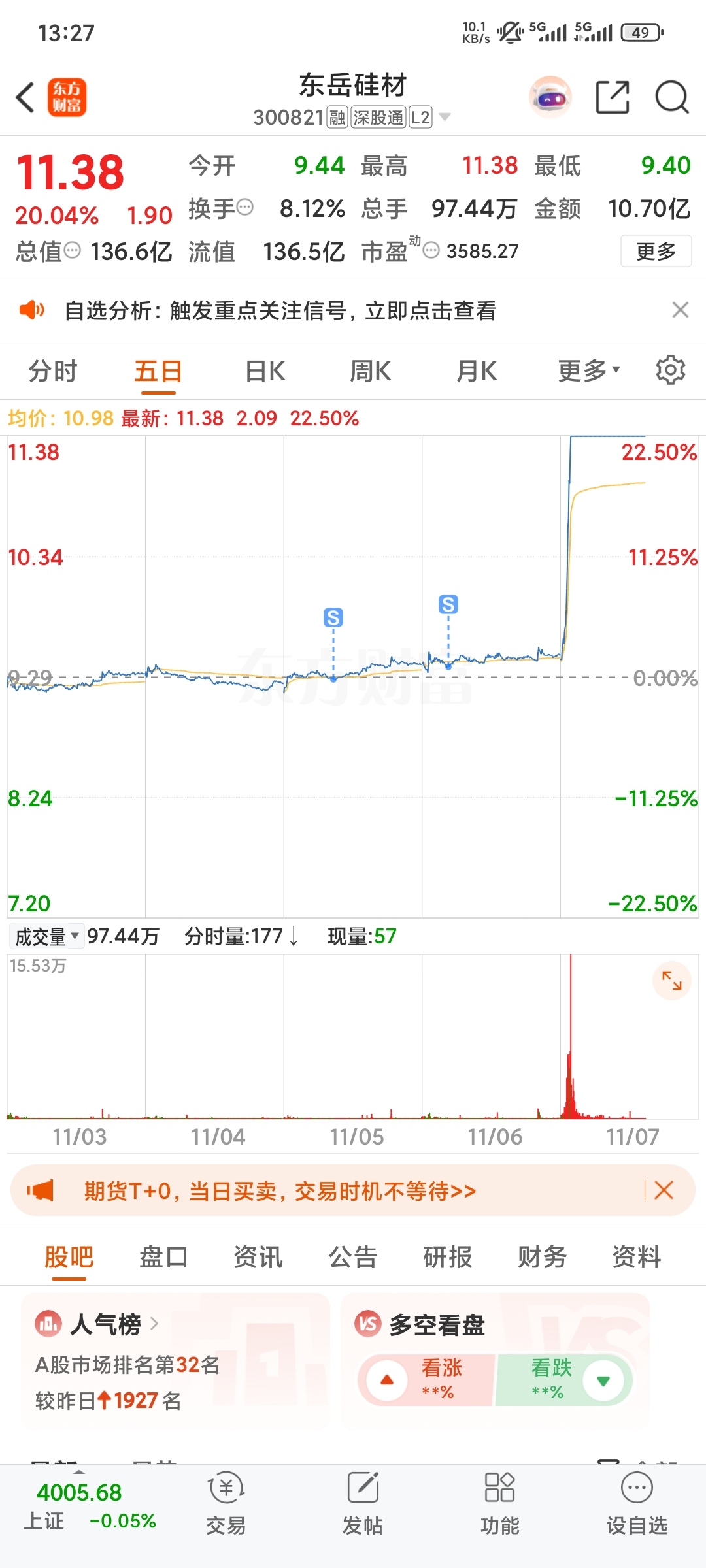 $东岳硅材(SZ300821)$ 就差我1万块啊