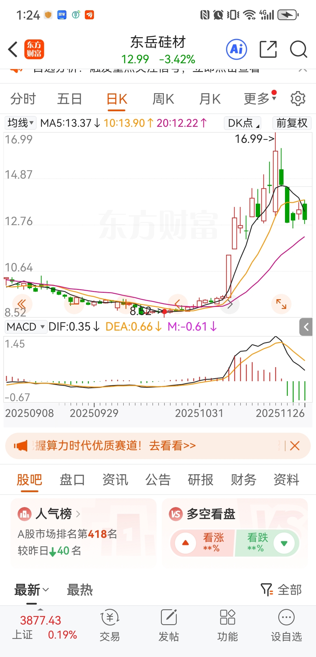 $东岳硅材(SZ300821)$ 金叉向下,完了,下降通道