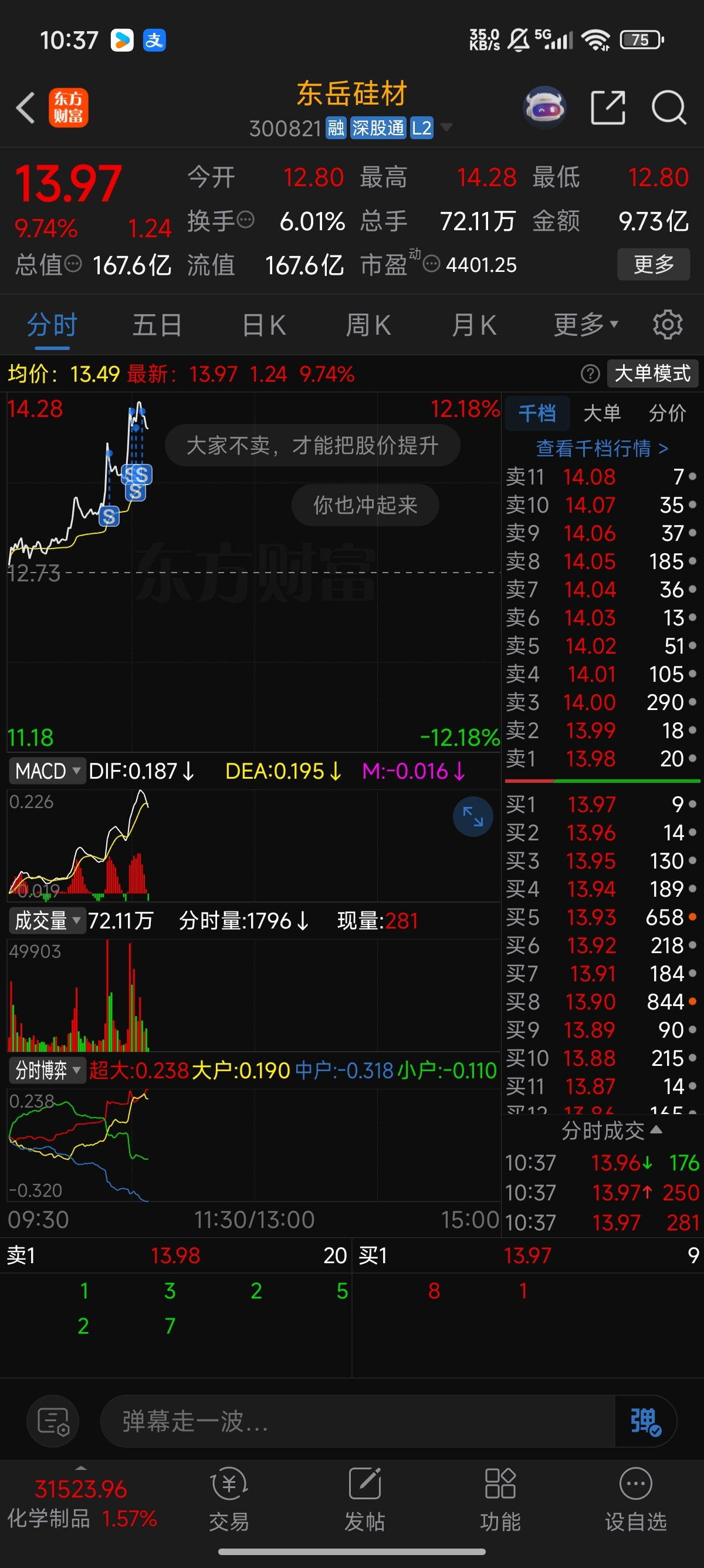 $东岳硅材(SZ300821)$ 解套赚两个点,跑了,在这里套了舒服,这波下跌没有亏