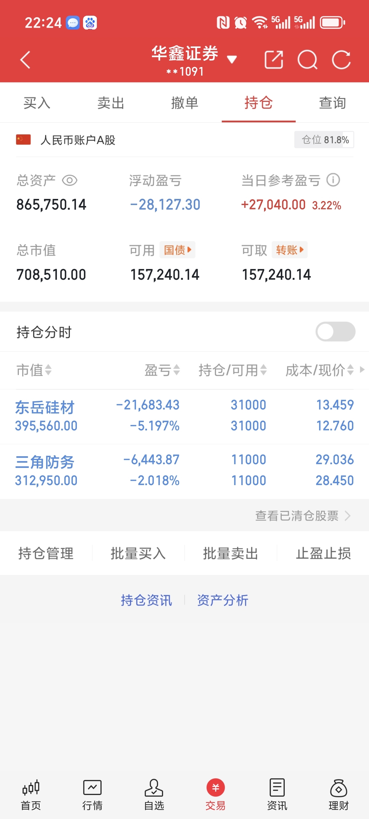记录第118天。东岳硅材,三角防务。免责声明:本文内容为个人记录,不构成任何投资