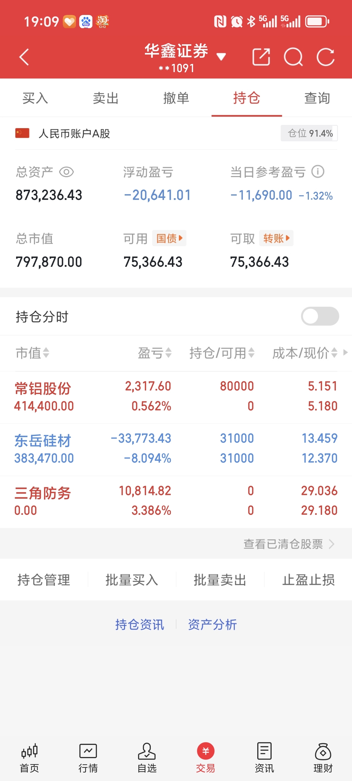 12月10日。-记录第121天。入:常铝股份。出:三角防务。持:东岳硅材,常铝股