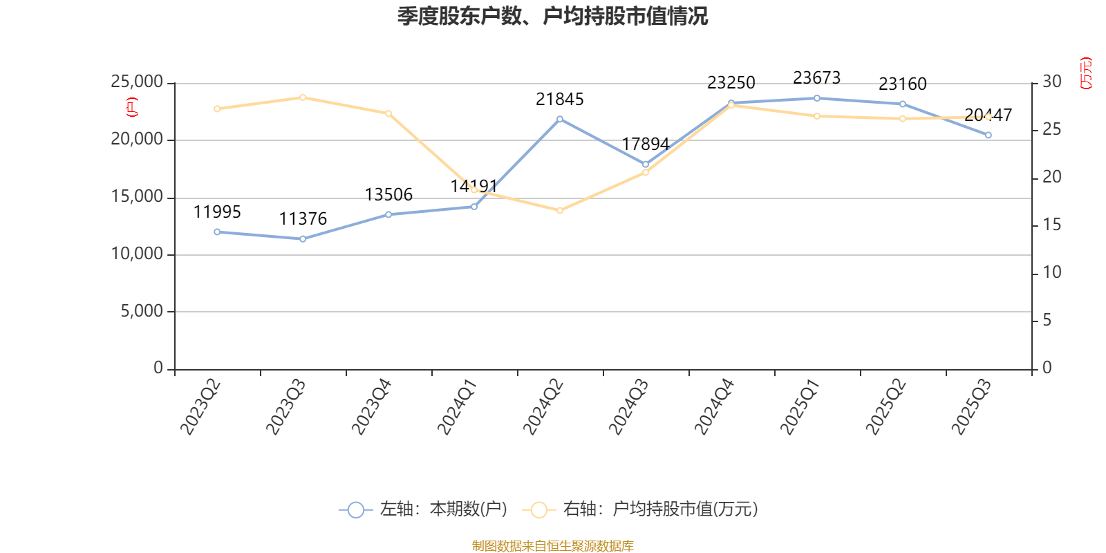 三季报显示,2025年三季度末的公司十大流通股东中,新进股东为焦露萍,取代了二季度末的李建东。在具体持股比例上,虞金龙持股有所上升,林州市启财企业管理合伙企业(有限合伙)、林州市启迈企业管理合伙企业(有限合伙)、香港中央结算有限公司持股有所下降。