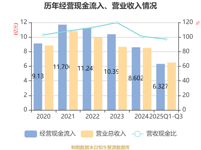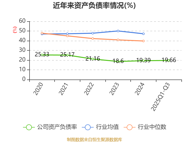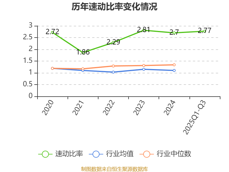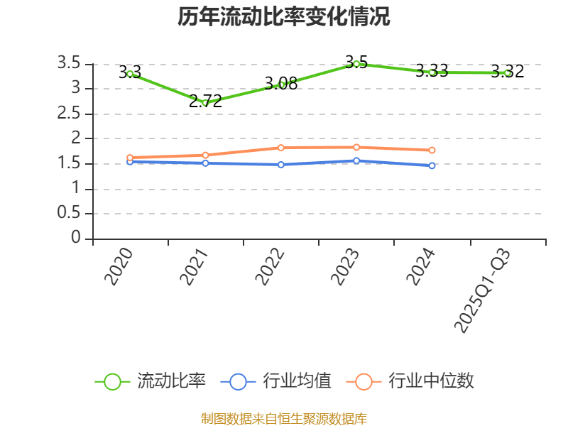 2025年前三季度,公司流动比率为3.32,速动比率为2.77。