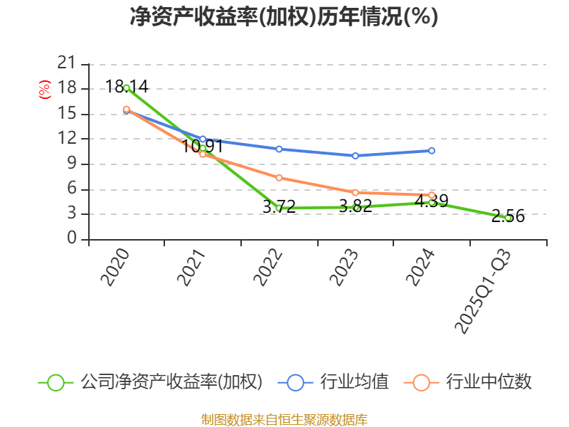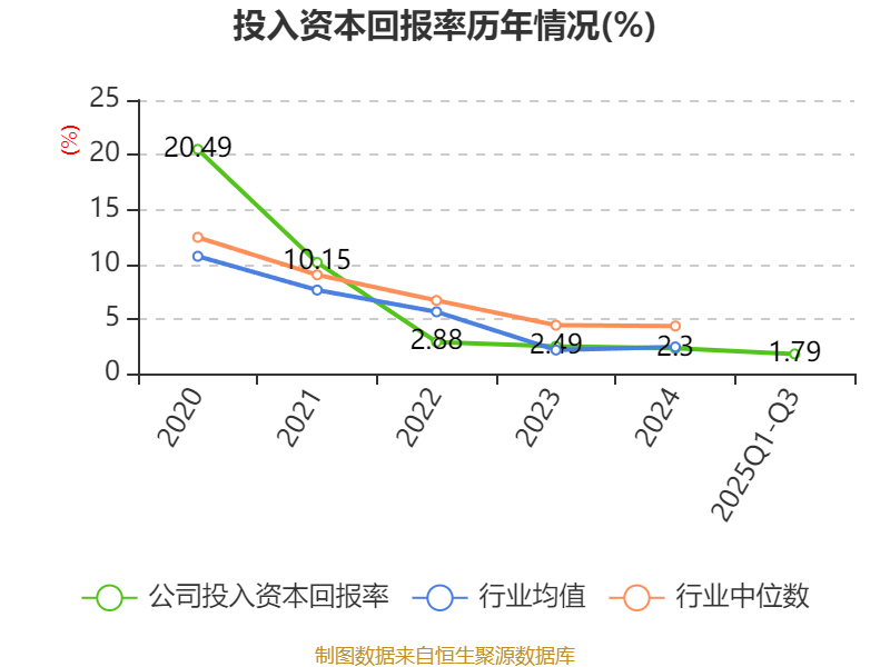 盈利能力方面, 2025年前三季度公司加权平均净资产收益率为2.56%,同比下降2.16个百分点。公司2025年前三季度投入资本回报率为1.79%,较上年同期下降1.7个百分点。